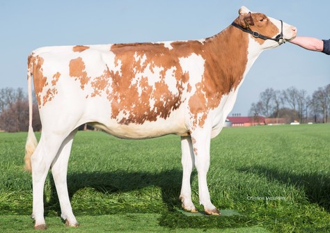 Gywer zoon Sanderij Ginger bij Qnetics! Uit de schitterende Sanderij / Apina Massia familie Saskia Red heeft een grensverleggende productie index en super uiers |