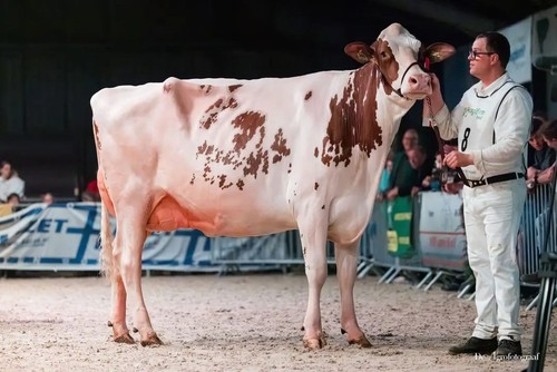 Een bijzonder hoogtepunt was de eerste roodbonte koe op het bedrijf die de excellente status behaalde. De roodbonte Moovin RDC-dochter Willem’s-Hoeve JMW Applause 26 Red werd als vaars, na haar succesvolle showdebuut op de HHH in 2023, al ingeschreven met een maximale score van VG-89 AV. Inmiddels, als derdekalfs koe, werd zij opgewaardeerd naar EX-90, met een indrukwekkende EX-92 voor haar uier.