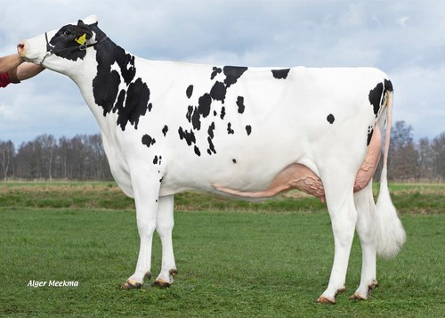 Ook nieuw in de lijst is een resultaat uit het fokprogramma van WKF Holsteins. WKF RS Malissa (Real Syn x Revolution) zet zich met 447 gNVI (1133 LVD) vast op plek 3. Malissa's roots liggen bij niemand minder dan K&L OH Mabel. Daarbij test de Real Syn een mooie 155 gRZG.