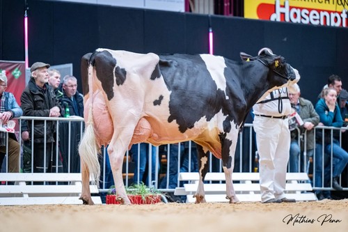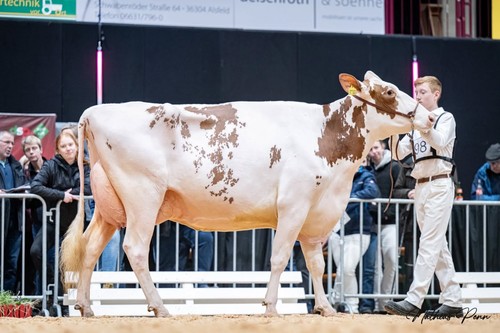 Na een succesvolle veilingavond, waarbij meerdere verkoopdieren van Volke/Hauck GbR voor topbedragen van eigenaar wisselden, werd de toon direct gezet. Zo werd Lot 41, ZHW Whoopi P, verkocht voor €14.000 en bracht Lot 16, ZHW Amira Red, €7.000 op. Op zaterdag zette de euphorie zich voort tijdens de showdag van Qnetics’ Zukunft Rind. Met meerdere dieren in diverse categorieën betraden de beste koeien van stal de showring, wat resulteerde in meerdere toprankingen.