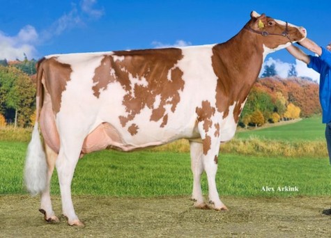 The dam of Artie Rozie is Advent daughter Buckhorn-Acres Srose-Red EX-92. This Ed Red Roos is a full sister to Zeedieker Roseanna Red EX-91, the Grand Champion R&W of the HHH-Show 2014. The pedigree of Artie Rozie goes back at D-R-A August EX-96 who is also the broodcow behind the Kamps-Hollow Durham Altitude EX-95 family.