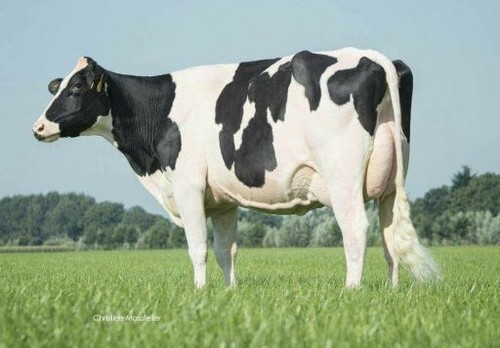 RN Golley Taya has extremely high components: +0.41% fat and +0.10% protein on the American basis, resulting in 164 pounds of fat & protein and 3345 gTPI. In addition, this Beyond Shpstr Golley daughter, bred by Robert Neppelenbroek, Drijber, scores +1.60 PTAT and +1.18 UDC. Many top breeding bulls are from this very solid cow family, such as Mr Welcome Uno Tuffy and Tatum (by Uno), Taboo (by Bookem), Welcome Hill Tango (by Hill) and Progenesis Topnotch (by Jedi).