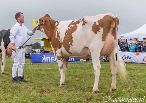 Shorty Holsteins, Nick van der Burg in The Netherlands, was recently very successful with the just fresh Mr Apple Diamondback RDC daughter SH Happy Red. Happy had calved 20 days before the show at exactly 2.00 years of age and was looking very promising in Vreeland. She was first in her class, Junior Champion and was also honored as the Grand Champion of the Vreeland Show!