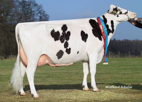 Three consecutive dams in this family have all been classified EX, with an average score of EX-92 and an average udder score of well over EX-92. The granddam of the offered Chief daughter is the internationally renowned KNS Dorflady EX-92. Remarkably, this famous Ramos daughter and her full sister Darling EX-93 both won the Schwarzbunt-Tage. From Dorflady EX-92 also comes the excellent Dempsey daughter KNS Dornröschen, the dam of two highly successful German show cows that have earned multiple titles in the show ring: OHB Dream EX-93 by Atwood and OHB Daria by Crushtime, class winner at the GDS 2023.